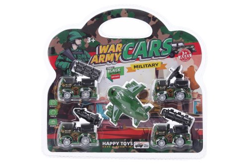 Vojenský technika 5 ks. Velikost dopravních prostředků 5,5 cm. Na zpětné natažení.