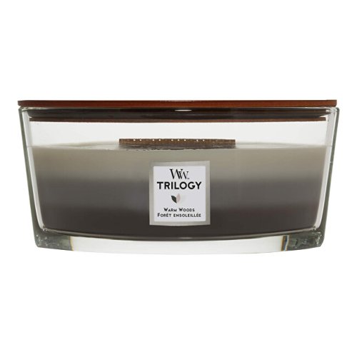 Svíčka loď Trilogy Warm Woods vám přináší hřejivou vůni santalového dřeva s tóny hřebíčku, vetiveru a pižma. Díky jedinečnému knotu HEARTHWICK® FLAME přináší tento typ svíčky zážitek dokonalého pohodlí u hořícího krbu. Jemný zvuk praskání a dlouhý tančící plamen vytváří neopakovatelnou atmosféru. Hoří až 30-40 hodin. Směs prémiového parafínu a sójového vosku s vysoce koncentrovanými vůněmi zajišťuje čisté hoření bez nepříjemných zbytků. Vonné esence byly pečlivě vybrané, aby naplnily místnost dlouhotrvající vůní. Otevřený tvar svíčky zvyšuje plochu odpařování vonných esencí z voskového jezírka a zajišťuje rovnoměrný vonný zážitek. Fireside – přirozená vůně jantaru, vetiveru a pižma. Redwood – bohatě dřevitá vůní sekvoje, santalového dřeva a jantaru. Sandalwood Clove – dřevitá vůně santalového dřeva s aromatickými tóny hřebíčku.