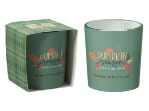 Elegantní svíčka ve skleničce s výraznou podzimní vůní (např. jablko, skořice). Dodávána v dárkové papírové krabičce s dekorem. Ideální jako pozornost nebo milý doplněk do interiéru.