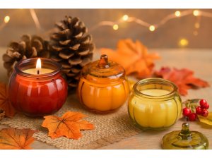 Stylová vonná svíčka ve skle s víkem ve tvaru dýně přináší vůni podzimu a kouzlo sezónní výzdoby v jednom. Skvělá jako dekorace i jako dárek. Dostupná v různých barevných provedeních – ladí do každého interiéru.