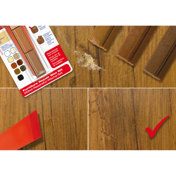 • Opravný vosk na poškozený či poškrábaný nábytek umožní zaplnit poničený povrch na dýze a různých druzích dřeva