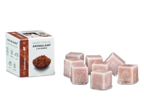 Vonný vosk Santalové dřevo je vyroben z kvalitního palmového vosku a vonných esencí, které zajišťují teplou, dřevitou a dlouhotrvající vůni santalového dřeva. Vosk je rozdělen do 8 kostiček, které lze použít v elektrických i klasických aromalampách na čajovou svíčku. Je vhodný pro osvěžení interiérů a lze jej používat přímo v prostoru bez nutnosti aromalampy. Rozměry: délka 1,6 cm, šířka 1,6 cm, výška 1,6 cm. Hmotnost: 30 g. Barva: světle hnědá.
