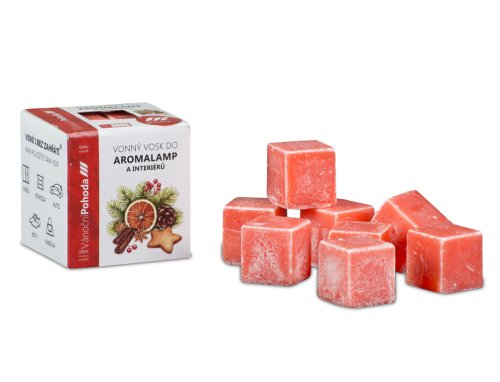 Vonný vosk Vánoční pohoda je vyroben z kvalitního palmového vosku a vonných esencí, které zajišťují teplou, kořeněnou a dlouhotrvající vůni vánočních svátků. Vosk je rozdělen do 8 kostiček, které lze použít v elektrických i klasických aromalampách na čajovou svíčku. Je vhodný pro osvěžení interiérů a lze jej používat přímo v prostoru bez nutnosti aromalampy. Rozměry: délka 1,6 cm, šířka 1,6 cm, výška 1,6 cm. Hmotnost: 30 g. Barva: červená.