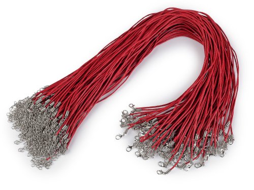 Voskovaná šňůrka s karabinkou délka 45 cm - červená (100 ks)