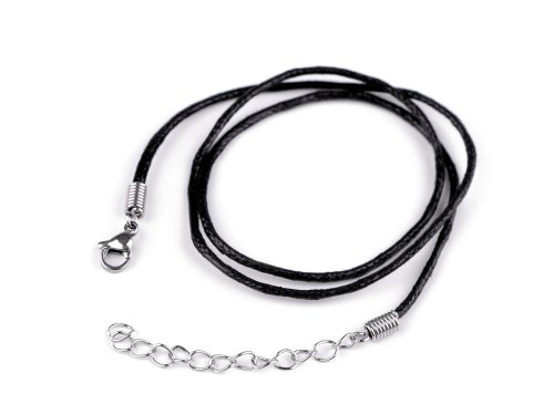 Bavlněné šňůrky jsou povrchově ošetřené voskováním. Mají připevněné kompletní zapínání z nerezové oceli na karabinku. Stačí pouze navléct přívěsek a vyrazit. Samozřejmostí tohoto hotového výrobku je prodlužovací řetízek. Délka 45 cm + 5 cm adjustační řetízek. Karabinka 7 x 11 mm, šňůra průměr 1,7 mm.