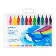Barevné voskové pastelky Rozpustné ve vodě Dodáváno včetně křídové škrabky V průhledném pouzdře z PP s eurozávěsem