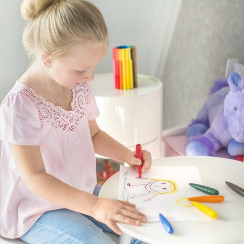 • gumovatelné, * neznečišťují ruce - vhodné pro malé děti od 4 let, * znovupoužitelný plastový box pro uchování pastelek, * zářivé a syté barvy
