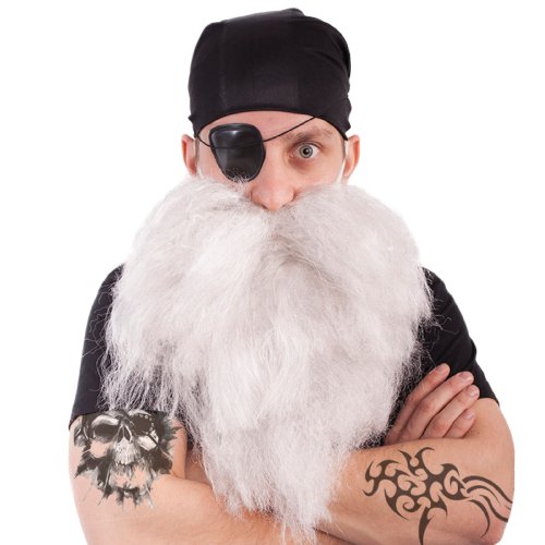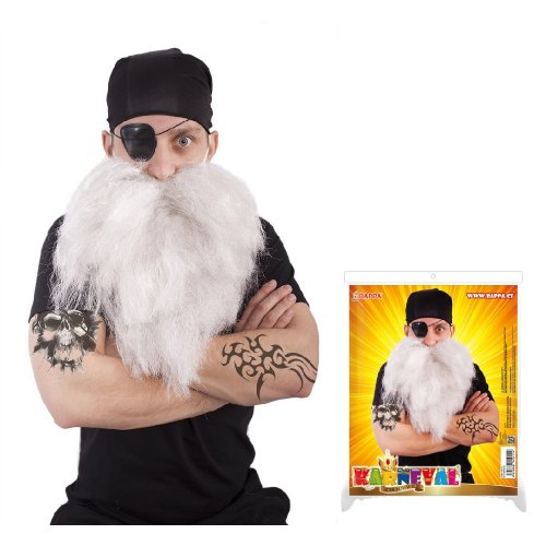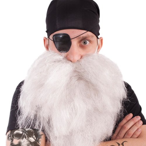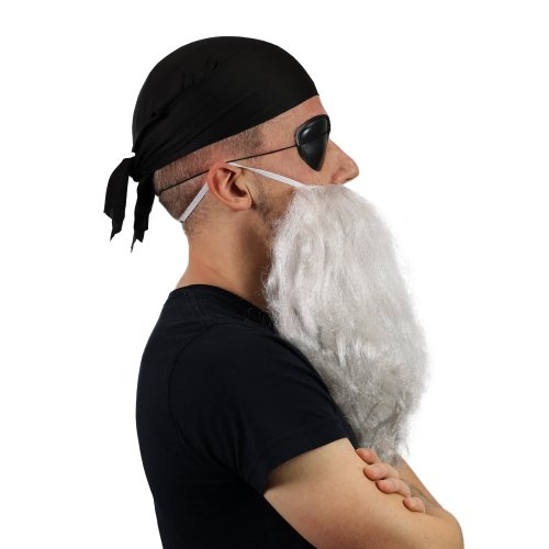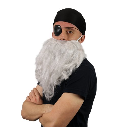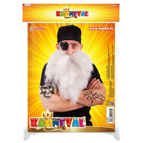 Pořádné vousy jsou nezbytným doplňkem pirátského kostýmu! Součástí této soupravy je také klapka na oko a šátek černé barvy.