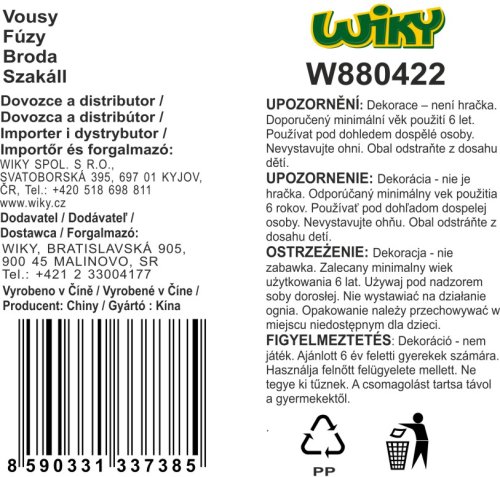 Bílé vousy jsou vhodné zejména pro Mikuláše, trpaslíka nebo čaroděje. Dají se ale také použít pro masku dědečka či pohádkové postavy. Upevňují se pomocí gumy vedené za hlavou a mají otvor pro ústa.