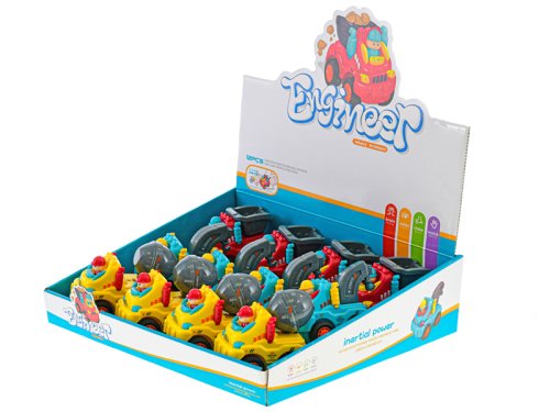 Veselé stavební autíčko na setrvačník bude skvělým doplňkem i pro ty nejmenší stavitele. Autíčko je ve třech druzích - jeřáb, sklápěčka a domíchávač. Auto má velikost 8 cm. Vhodné pro děti od 18 měsíců.