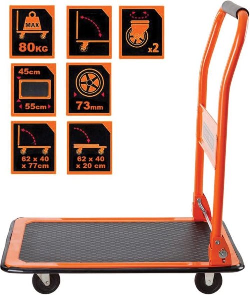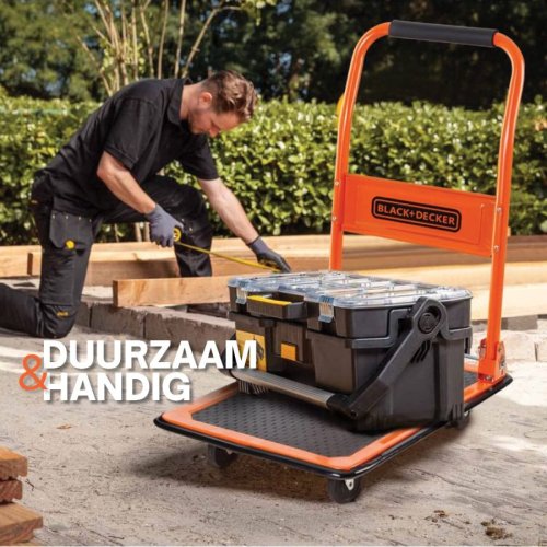 Řešíte, kde koupit spolehlivý a odolný plošinový vozík pro snadnou přepravu těžkých předmětů? Plošinový vozík od světoznámé značky Black+Decker je ideální volbou! Více než 1500 prodaných kusů mluví za vše. Díky nosnosti až do 80 kg a robustní ocelové konstrukci zvládne přemístění nábytku, nářadí nebo těžkých balíků bez námahy. Navíc má vozík sklopnou rukojeť, takže zabírá minimum místa při skladování nebo převážení a je snadno přenosný. Takto složený jej pohodlně dáte i do kufru auta.