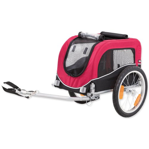 Kolečka mají rychloupínací systém pro snadnou a rychlou manipulaci. Jednoduše skladná konstrukce pomůže ušetřit místo. Pro větší praktičnost má vozík po stranách úložné kapsy na pamlsky, či jiné nepostradatelné drobnosti na cesty.