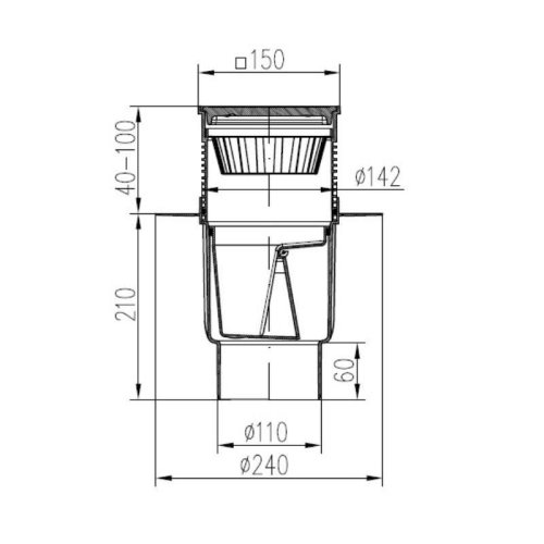 • Kanalizační vpusť se suchou protizápachovou klapkou je vhodná pro venkovní použití.