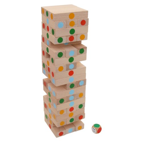 Vratká věž přírodní s puntíky - velmi oblíbená hra na dlouhé večery. Vyrobeno z tuzemských dřevin výhradně na území ČR. Dřevěné hračky disponují kvalitním zpracováním, vše probíhá ručně. Vyrobily pro Vás zlaté české ručičky. Hračka splňuje požadavky norem bezpečnosti a ma certifikáty nezávadnosti. Rozměr věže po sestavení: 8x8x28 cm. Pravidla hry:Hráč háže kostkou a musí vytáhnout tu barvu destičky, která mu padne na kostce, následně položí vytáhnutou kostku nahoru, hra tak nekončí, dokud někomu věž nespadne. Hlavní vlastnosti: kvalitní česká ruční výrobarozvíjí motoriku a logické myšlení dětí