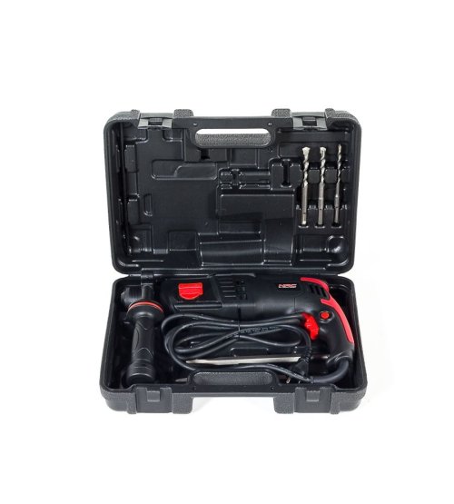 Vrtací kladivo NAC HE90-LD SDS-Plus s výkonem 900 W využijete při renovacích, instalacích, na lehké stavební práce a nejrůznější opravy. S příklepem s ním můžete vrtat do kamene, betonu nebo cihel. Kladivo lze použít i pro bezpříklepové vrtání do dřeva, keramiky a kovu. Pro bezpečnější přepravu slouží praktický plastový kufr, do kterého se vejde vrtačka, 3 vrtáky a 2 sekáče.