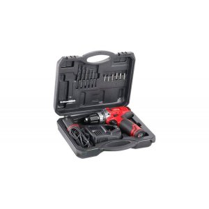 • v praktickém setu v kufru je kromě AKU vrtačky také - 2 x baterie 1.5 Ah (čas nabíjení 45 min.), rychlonabíječka 2.4 A, unašeč 1/4", bity a vrtáky HSS