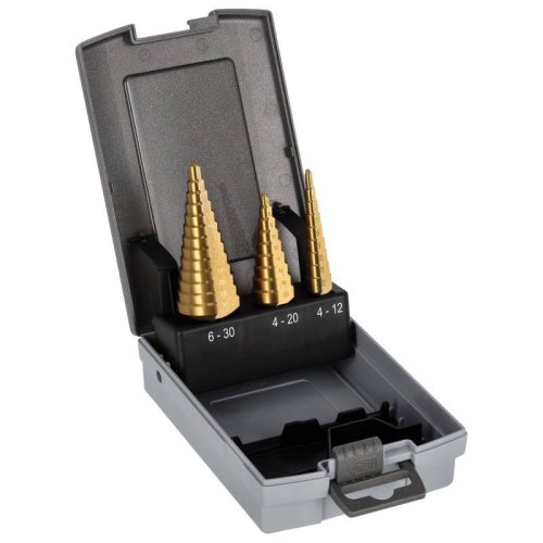 stupňovité vrtáky pro použití v materiálech o tloušťce do 4 mm pro vtrání bez otřepů
