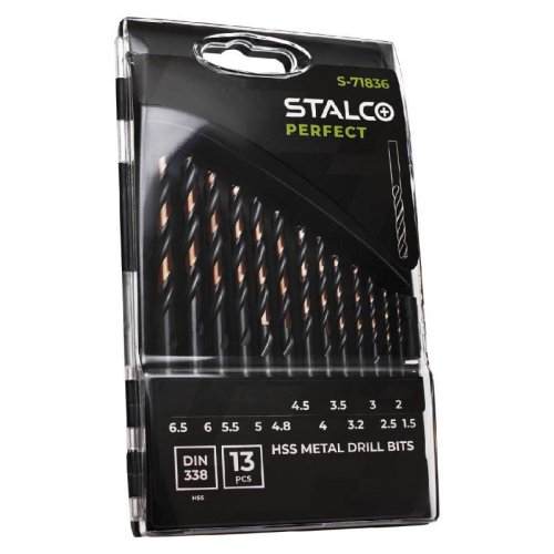 Vrtáky do kovu HSS, 1,5 - 6,5 mm, STALCO PERFECT, sada 13 ks