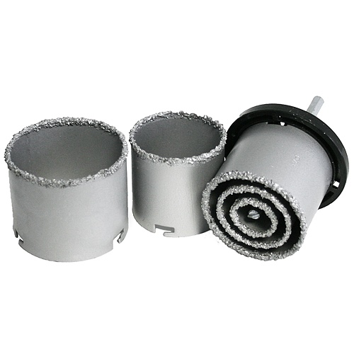 Sada vykružovacích diamantových korunek s unašečem. Pro vrtání do dlažby a keramických obkladaček. Průměry 33 / 53 / 67 / 73 / 83 mm. Unášecí trn pro uchycení do vrtačky. EAN 8585023310920