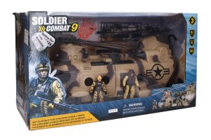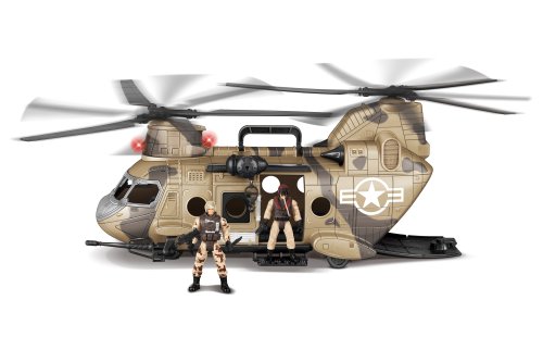 Vrtulník s figurkami a efekty. Dron střílející náboje a síť. Velikost vrtulníku 50 cm, vojáků 10 cm. Světelné a zvukové efekty tlačítky na levém boku pod vrtulí. 2xAA baterie do vrtulníku nejsou součástí. Obsah - vrtulník, dron, náboje, zbraně, 2 figurky vojáků. Obrázkový návod na používání na zadní straně obalu.