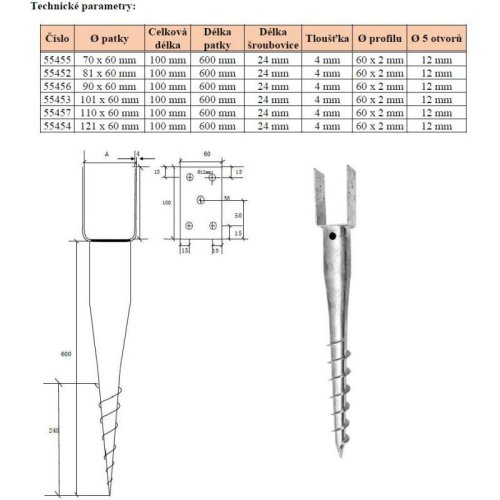 žárově zinkovaný šroubovací vrut s U patkou "U" v názvu zemního vrutu udává šířku profilu U-patky pro uchycení dřevěného trámu použití na plotové sloupky, pergoly, terasy, informační tabule, garážová …