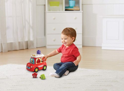 Vtech Červené mluvící auto je skvělá interaktivní „vkládačka" pro děti již od 12 měsíců s roztomilou lamou za volantem. Děti se naučí poznávat tvary (čtverec, hvězda, trojúhelník, kruh), čísla, zvuky a názvy zvířat. Budou také poznávat jednotlivé číslice i barvy. Jednotlivé tvary lze vozit na střeše autíčka nebo v zavazadlovém prostoru s vyklápěcím víkem kufru. Vkládáním tvarů do otvorů v autě děti rozvíjí motorické dovednosti a koordinaci ruka-oko. Vtech Červené mluvící auto umí spoustu zábavných frází, kterými povzbuzuje děti ke kreativní hře. Zahraje i 3 písničky a 15 melodií. Rodiče určitě potěší ovládání hlasitosti, automatické vypínání a extrémně odolná konstrukce.