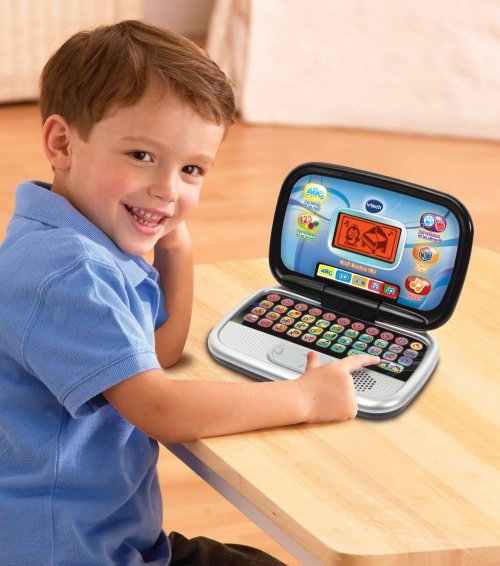 Vtech První notebook je sklopný dětský počítač imitující klasický notebook pro dospělé. Je určen pro děti od 3 do 7 let. Součástí notebooku je více než 20 výukových a zábavných aktivit. Vtech První notebook naučí poznávat 26 základních písmen české (ve slovenské verzi slovenské) abecedy. A to jak velká, tak i malá písmena včetně jejich užití ve slovech a jejich výslovnost. V dalších variantách hry naučí notebook děti všechna čísla do deseti, učí je porovnávat i počítání. Děti vybízí k aktivitě například při hledání a počítání různých tvarů, ryb nebo ovoce a zeleniny. V neposlední řadě budou děti poznávat stopy zvířat, a jaké zvuky zvířata vydávají. Veškeré získané vědomosti shrnují poutavým způsobem různé testy. Jaká by to byla hračka, kdyby neobsahovala také zábavné hry. Hry jsou nejen zábavné, ale dítě se dále rozvíjí v logickém myšlení, úsudku, postřehu nebo třeba v poznávání hudebních nástrojů a hudebních stylů. Vtipný tučňák naučí děti také přesně rozeznávat pojmy jako je „před, pod, nad, vedle, za"