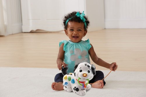 Mluvící Dalmatin od VTech® je hravé interaktivní štěně, které miluje procházky! Štěně lze táhnout, tlačit nebo si hrát s jeho barevnými tlačítky. Tlačítka mají za úkol představit dětem první čísla a naučit poznávat některé barvy. Stiskem tlačítek se také přehrávají písničky, zábavné fráze nebo melodie.