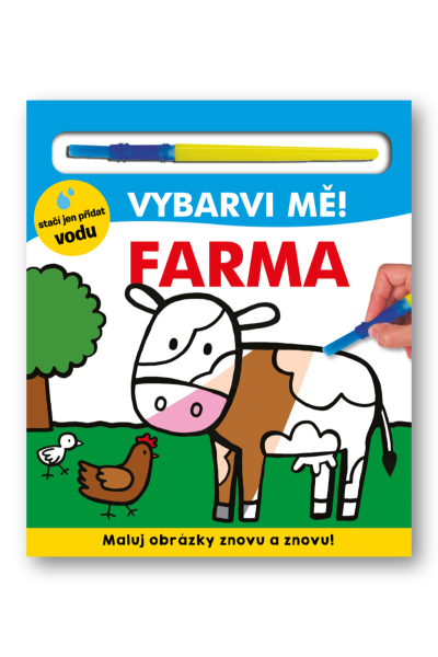 Knížka s pevnými stránkami je plná obrázků z prostředí farmy, které jsou částečně barevné. Bílé části lze velice snadno vybarvit - stačí namočit štětec, který je součástí knihy, do vody a barva se jako zázrakem na bílém podkladě objeví. To ale není všechno! Vymalovaný obrázek jako kouzlem zmizí, a tak jej dítě může vymalovávat stále dokola. Zkontrujte, zda dítě drží štětec správně. S touto knížkou si bude procvičovat jemné motorické schopnosti a koordinaci oka a ruky.