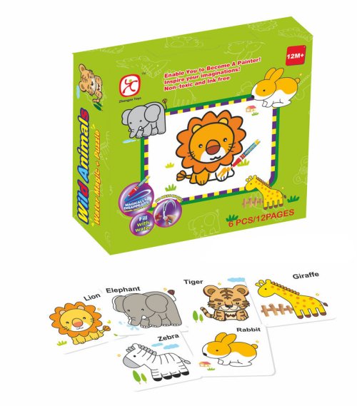 Slož si puzzle a stejný obrázek si vybarvi. Naplň vodu do přiloženého pera a můžeš malovat. Po uschnutí lze malovat znovu.