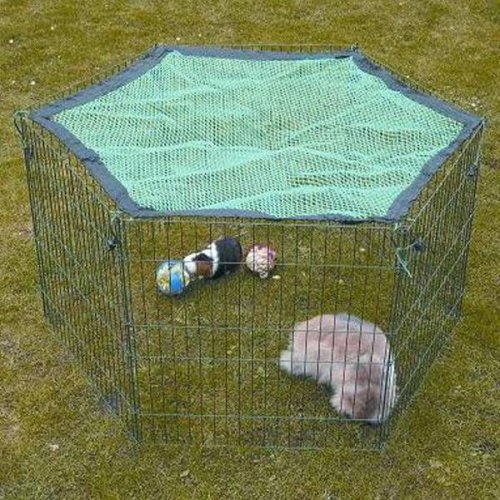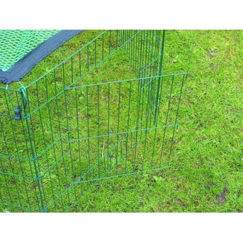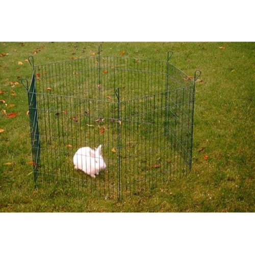 Skládací ohrada je vhodná pro chov králíků, větších hlodavců, mláďat drůbeže apod., kterým zabrání v úniku a poskytne ochranu před dravci. Výběh je tvořen šesti drátěnými panely, které se propojují a ukotvují k zemi dlouhými železnými kolíky. Jeden z panelů je opatřen dvířky. K výběhu lze přikoupit šestiúhelníkovou ochrannou síť (ZB009777). Rozměry: Ø 108 cm panel 60 × 63 cm (d × v) Hmotnost: 4,5 kg Materiál: kov Barva: zelená Upozornění: Výběh by měl být vždy alespoň zčásti zastíněný.