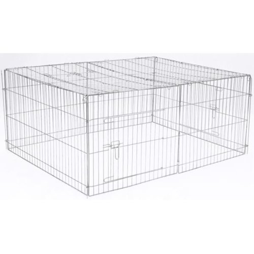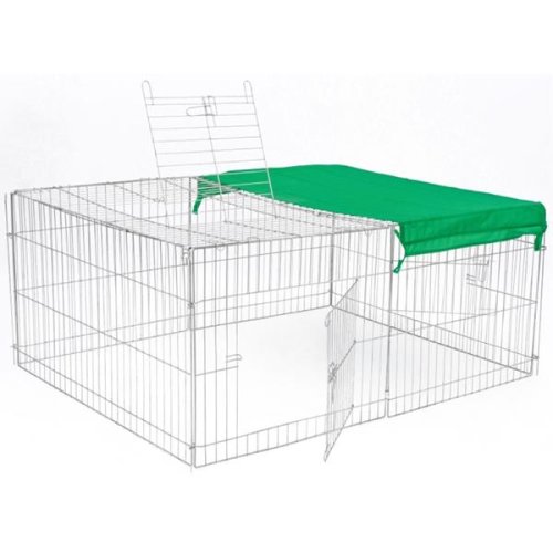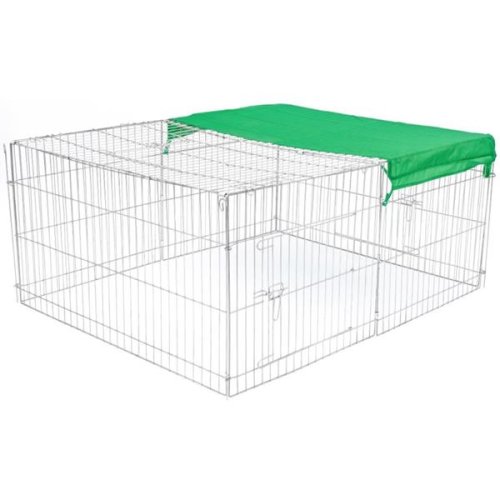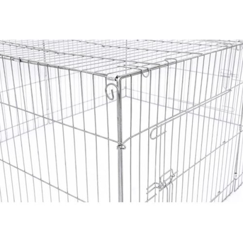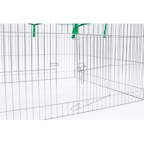 Bezpečná klec pro chov králíků, větších hlodavců, kuřat a dalších drobných zvířat je tvořena třemi drátěnými dílci, které se propojují a ukotvují k zemi dlouhými železnými kolíky. Ohrádka zvířatům brání v úniku a zároveň je chrání před útoky dravců. Přístup do výběhu umožňují dvoje boční a jedny stropní dvířka. Součástí balení je plachta pro zakrytí cca poloviny klece. Rozměry: 144 × 112 × 60 cm (d × š × v) rozteč drátů v pletivu – 3,1 cm Materiál: kov Upozornění: Výběh by měl být vždy alespoň zčásti zastíněný.