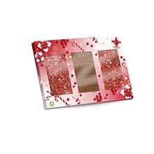Výběr velmi jemných čokolád, vyrobených z nejjakostnějších surovin - 2 x mléčná čokoláda s jahodovým posypem, hořká 60% Hmotnost: 300 g Rozměr: 23,5 x 16,5 x 0,9 cm