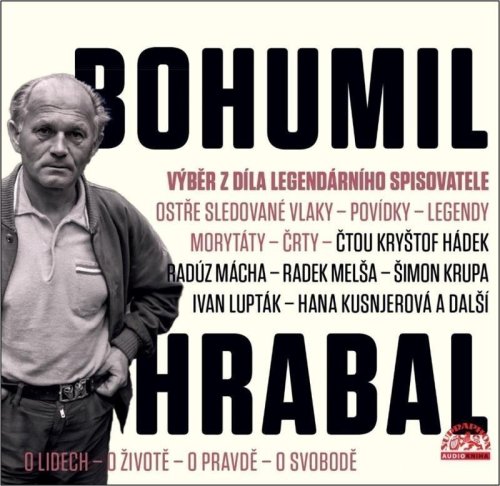 "Bohumil Hrabal - Z díla legendárního spisovatele / Ostře sledované vlaky, povídky, legendy morytáty a črty / Čtou Kryštof Hádek, Čestmír Řanda, Ota Sládek, Veronika Borovcová-Dušková, Šimon Krupa, Radek Melša, Hana Kusnjerová, Jiří Klika, Ivan Lupták, Radúz Mácha / CD-MP3 papírový digifile ***** Zvukový záznam z díla autora, proslulého nejen v českém prostředí, ale i v kontextu kultury evropské a světové. Ke stodesetiletému výročí narození Bohumila Hrabala (28. 3. 1914 – 3. 2. 1997), jednoho z nejvýznamnějších českých spisovatelů druhé poloviny dvacátého století, vychází v řadě titulů, věnovaných nejlepším českým literátům a umělcům, tento komplet, kombinující archivní záznamy s nově nahranými. V archivu jsme objevili povídky z knihy Perlička na dně, Domácí úkoly či Obsluhoval jsem anglického krále a Pábitelé. Z nejrozsáhlejších archivních záznamů jsou zde Ostře sledované vlaky v interpretaci Kryštofa Hádka. Další povídky, které většinou ještě ve zvuku nevyšly, jsou z knih Morytáty a legendy či Povídky, črty a hovory. Ve většině z nich vnímáme občanské postoje, v 50. letech velmi statečné a odvážné, propojené s fabulačním mistrovstvím, hravou fantazií autora využívajícího vše, co se mu kdy v životě přihodilo či co se kdy dozvěděl. Díky mistrovské interpretaci mladých umělců (Radúz Mácha, Ivan Lupták, Hana Kusnjerová, Radek Melša a Šimon Krupa) vnímáme krutou a přesnou protikladnost životních dějů, jak je Hrabal zachytil. ***** Tracklist: Perlička na dně / Ve stínu Damoklových mečů / Setkání / Diamantové očko / Ostře sledované vlaky / Lednová povídka (1952) / Únorová povídka (1952) / Morytát o prasečích hodech (1952) / Jeden všední den (1952) / Blitzkrieg (1955) / Legenda o krásné Julince (1962) / Automat Svět (1963) / Romantici (1964) / Legenda o Lamertzových jehlách (1965) / Květnový morytát (1965) / Morytát o cestovatelích kolem světa (1966) / Morytát o královně noci"