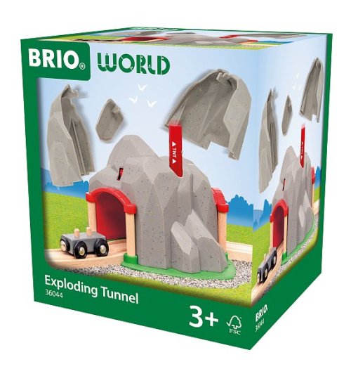 BUM! Vyhoďte horu do povětří a projeďte jejím středem – vybuchujícím tunelem. Velká sada s realistickým kamenným povrchem a skrytým železničním tunelem bude skvělým doplňkem každé sady BRIO World. Do vrtu vložte TNT nálož a sledujte, jak hora exploduje a odhalí tajný tunel. Hračka je vyrobena z robustních plastových a dřevěných dílů a díky průchozí zakřivené dřevěné dráze ji snadno propojíte s ostatními hračkami BRIO World. Vybuchující tunel obsahuje 3 díly: 1× vybuchující tunel s oddělitelnými částmi, 1× TNT nálož a 1× vagon. Rozměry balení: 20 x 18 x 16 cm. Věk: 3+