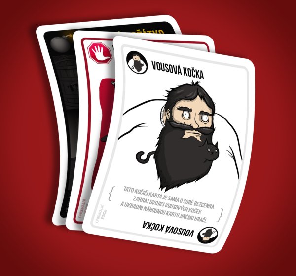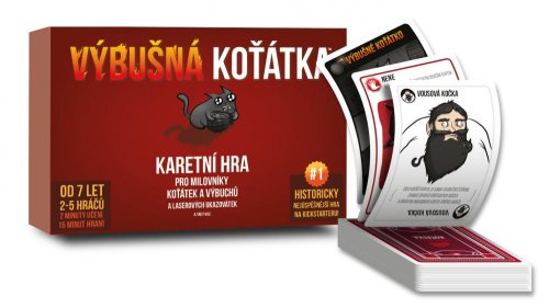 O hře Výbušná koťátka Výbušná koťátka jsou extrémně strategickou verzí ruské rulety (jen s koťátky). Hráči si dobírají karty, dokud si někdo nelízne Výbušné koťátko, exploduje, umře a je vyřazen ze hry. Pokud tento hráč nemá kartu Zneškodni, která mu umožní zneškodnit koťátko například pomocí laserového ukazovátka, podrbáním na bříšku nebo sendviče s šantou kočičí. Úkolem všech ostatních karet v balíčku je pomoci hráčům držet se Výbušným koťátkům z cesty (nebo je nastrčit do cesty ostatním).