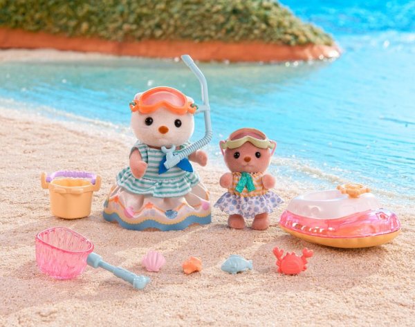 Poznejte sestry z rodiny mořských vyder Sylvanian Families. Sada obsahuje 2 roztomilé figurky z rodiny mořských vyder a příslušenství k potápění a hraní ve vodě. Sestry Marina a Manon milují moře. Děvčátka si vzala s sebou potápěčské brýle a příslušenství pro sbírání podmořských nálezů. Malá Manon může plavat v nafukovacím člunu. Marina nosí sukni, kterou lze sundat a snadno přeměnit na plavky. Sada obsahuje dvě figurky z rodiny mořských vyder, člun, podběrák, kyblík, dvoje potápěčské brýle, potápěčský šnorchl, mušle, kraba a rybu. Hračky Sylvanian Families rozvíjejí představivost a povzbuzují děti k hraní rolí. Hra s figurkami rozvíjí kreativitu a učí emocím vytvářením a vyprávěním příběhů založených na každodenních zážitcích a pozorování světa. Vyznačují se nejvyšší kvalitou a výjimečným důrazem na detaily. Figurky Sylvanian Families jsou pokryté měkkým semišem a mají pohyblivé končetiny a hlavu. Baleno v krabičce. Rozměry balení: 13 x 14,6 x 4,5 cm. Věk: 3+
