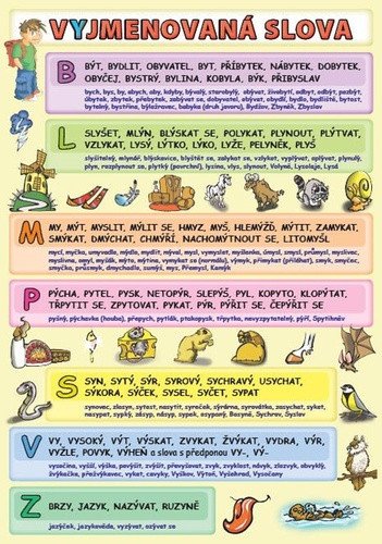 Přehledně zpracovaná ilustrovaná vyjmenovaná slova a slova od nich odvozená doplněná pravopisnými významovými rozdíly v praktickém formátu A5. Názorné ilustrace od Petra Kopla.