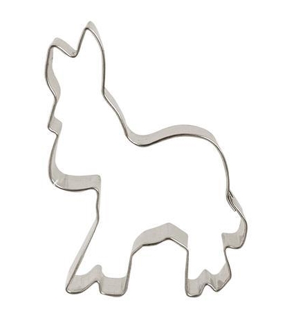 Vykrajovátko ve tvaru osla. Materiál pocínovaný potravinářský plech. Rozměry 55 x 70 mm. Český výrobce. Není vhodné do myčky nádobí. EAN 8594034701450