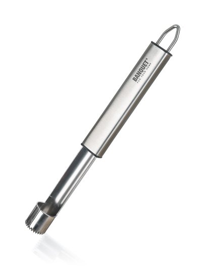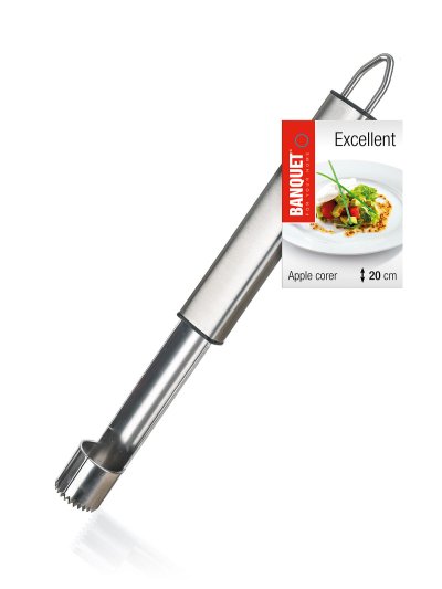 Vykrajovač jablečných jádřinců EXCELLENT 20 cm z nerezové oceli. Držadlo je opatřeno praktickým očkem pro možnost závěsu.
