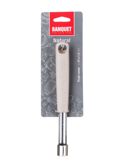 Vykrajovač jádřinců NATURAL vyrobený z nerezavějící oceli, je určen pro profesionální i domácí použití. Vykrajovač je opatřen praktickým očkem pro možnost zavěšení, snadno se udržuje, lze mýt v myčce na nádobí. Řada kuchyňského náčiní NATURAL splňuje náročné požadavky profesionálů a je vhodná i pro domácí použití. Jednoduchý funkční design zabezpečuje nadčasovost a kvalitativní životnost všech výrobků. Držadlo je vyrobeno z polypropylenu a pšeničných otrub.