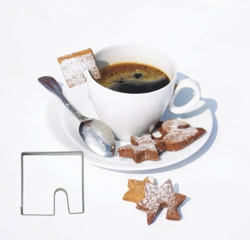 vykrajovátko ve tvaru čtverec s možností uchycení na hrnek ke kávě