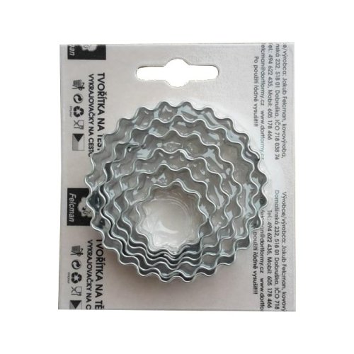 Sada vroubkovaných vykrajovaček. Materiál pocínovaný zdravotně nezávadný plech. Průměry 25 / 30 / 36 / 40 / 53 / 60 mm. Český výrobce. Není vhodné do myčky nádobí. EAN 8594034700163