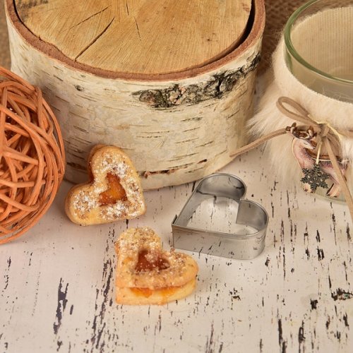 Vykrajovačky SRDCE můžete použít samostatně nebo ve větším tvaru vykrojit menší vykrajovačkou střed typický pro slepované linecké cukroví .
