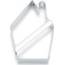Vykrajovátko ve tvaru chaloupky s rozměry 7,2 x 10 centimetru s ostrou hranou.