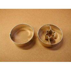 Materiál pocínovaný zdravotně nezávadný plech. 1 kus vykrajovačky je pouze kolečko, 1 kus vykrajovačky je kolečko se středem hvězdy. Velikost 38 mm. Český výrobce. Není vhodné do myčky nádobí. EAN 8594034708657