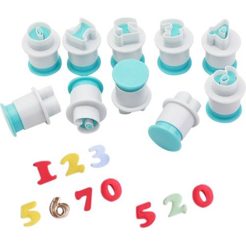 Vykrajovátka s pístem představují kompletní číselnou řadu. Vytvořit tak můžete libovolné číslice z marcipánu či cukrové pasty.