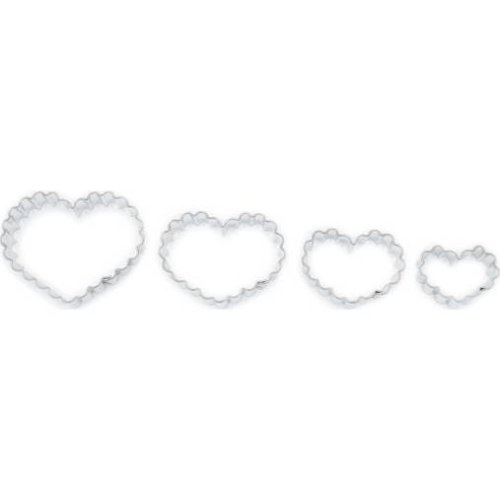 Vykrajovátka cukroví ve tvaru srdce s vroubkovaným okrajem – sada 4 kusů různé velikosti.