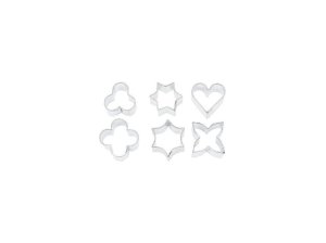 Šest vykrajovacích rámečků různých tvarů umožní vytvářet dokonale symetrické a ke zdobení vhodné motivy, které lze použít i samostatně jako malé zákusky či sladkosti, podle použitého těsta. Vhodné i na marcipánové ozdoby.