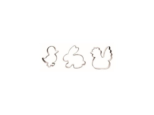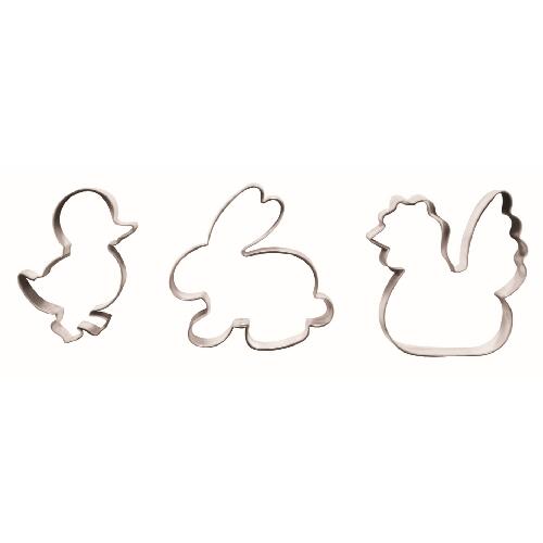 Sada 3 ks velikonočních vykrajovaček. Obsahuje kačenku, zajíčka, slepičku. Materiál pocínovaný zdravotně nezávadný plech. Rozměry 59 až 70 mm, výška pásku 16 mm. Český výrobce. EAN 8594021417364